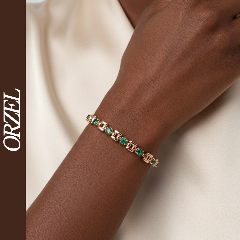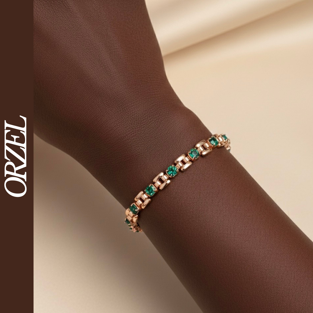 Ce bracelet en pierre pour femmes et filles se distingue par ses pierres vertes taillées en forme carrée, apportant une touche fraîche et élégante. Monté sur une chaîne à maillons en cuivre, il offre un style à la fois moderne et intemporel. Son fermoir à bascule assure une fermeture pratique et sécurisée, idéale pour un port quotidien ou occasionnel.